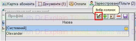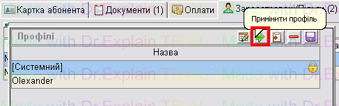 - Якщо створено декілька профілів, з різними налаштуваннями вигляду колонок у вкладці, і потрібно примінити налаштування одного з них, вибираєте потрібний профіль з списку (виділивши синім фоном) і нажимаємо кнопку - зелена стрілка "Примінити профіль", а якщо цей профіль ще потрібно встановити за замовчуванням, то далі на кнопку - "Встановити за замовчуванням".