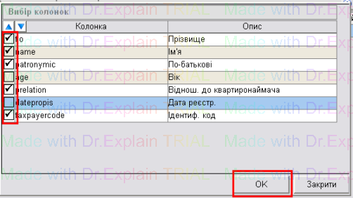 у вікні "Вибір колонок" забираємо галочки напроти тих колонок, які порібно щоб не показувало у вкладці — ОК.