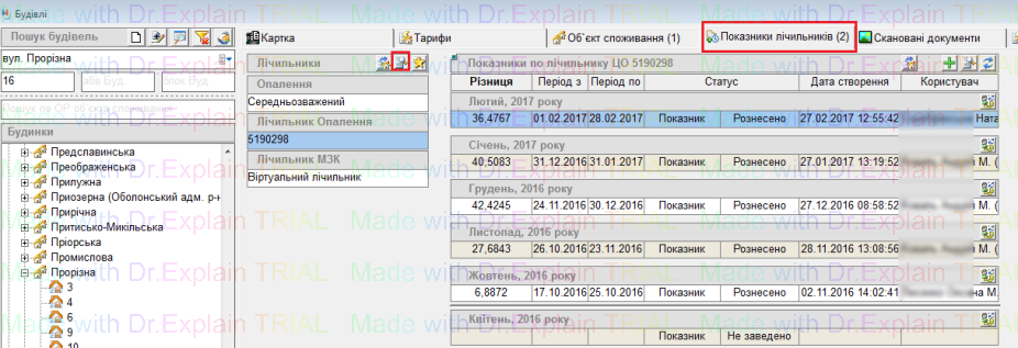 - на вкладці "Показники лічильників" вибрати потрібний лічильник