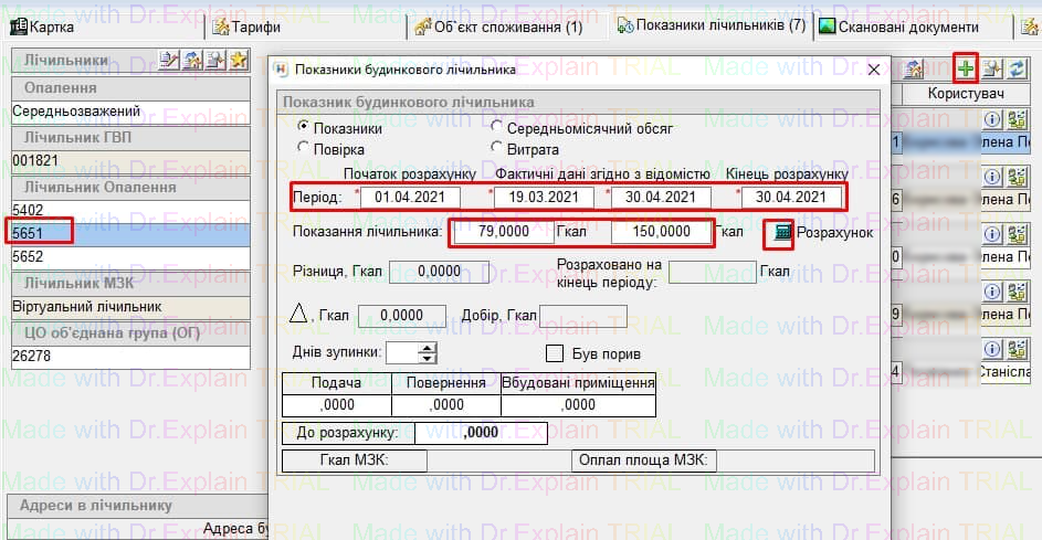 - і натиснути кнопку "+", відкриється вікно "Показники будинкового лічильника":