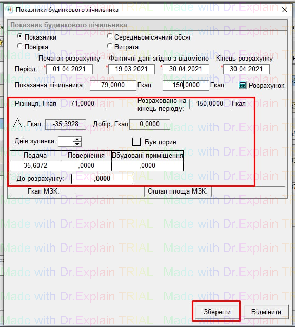 - І натиснути кнопку"Розрахунок", після чого автоматично розрахуються остальні дані: