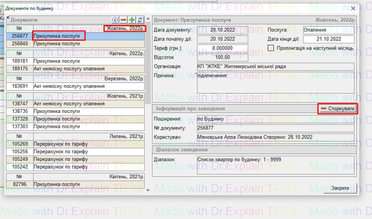 - Сторнуємо документ призупинки послуги