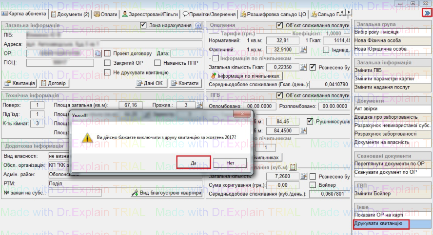 2) Перейти на потрібний ОР, в меню додаткові функції, і нажати на кнопку "Друкувати квитанцію". Далі нажати "ОК", після чого у картці ОР, біля поля "Не друкувати квитанцію" буде стояти відмітка