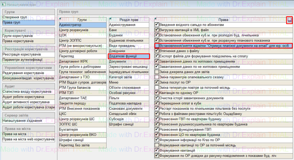 Налаштування права на Встановлення/Зняття відмітки "Отримує платіжні документи на email" для юр. осіб: