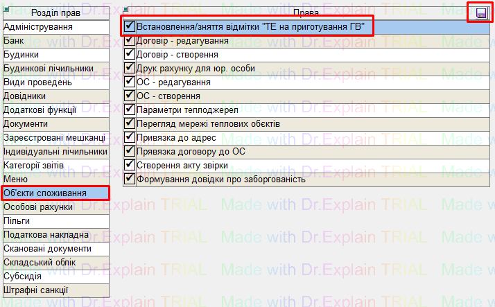 Налаштування прав для встановлення відмітки «ТЕ на приготування ГВ»: