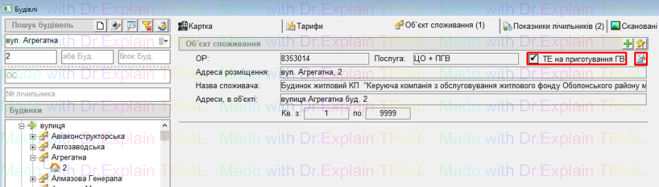 - після проставлення відмітки на об’єкті споживання, дана відмітка також буде відображена у картці усіх особових рахунків які входять в діапазон даного об’єкту споживання: