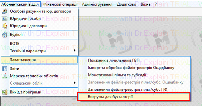 1. Абонентський відділ – Завантаження – Вигрузка для бухгалтерії: