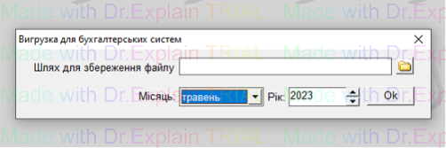 2. Відкриється вікно «Вигрузка для бухгалтерських систем»: