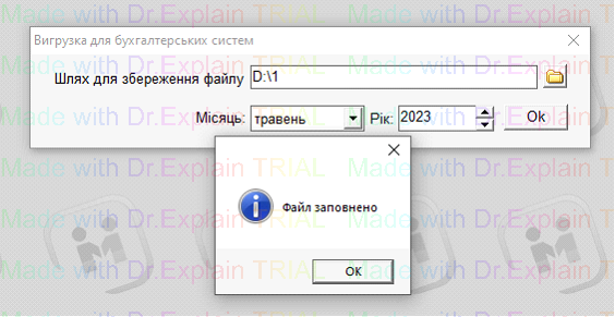 5. Після того як файл сформується, буде повідомлення «Файл заповнено», тут натиснути «Ок»: