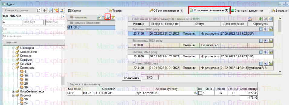- перейти на вкладку “Показники лічильників”, натиснути “лупу”: