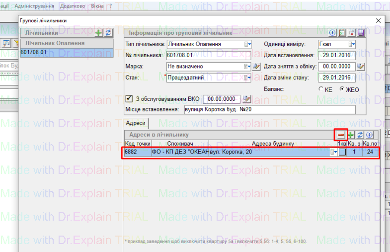 Якщо, наприклад, по квартирі, яка була по будинковому лічильнику, потрібно завести індивідуальний лічильник, і виключити цю квартиру з будинкового лічильника, тоді: