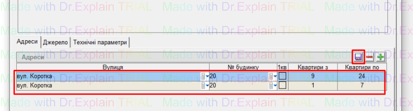 - після цього звести цю ж адресу з двома діапазонами квартир