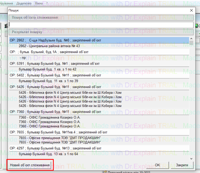 натиснути “+”, і у відкритому вікні натиснути “Новий об’єкт споживання”: