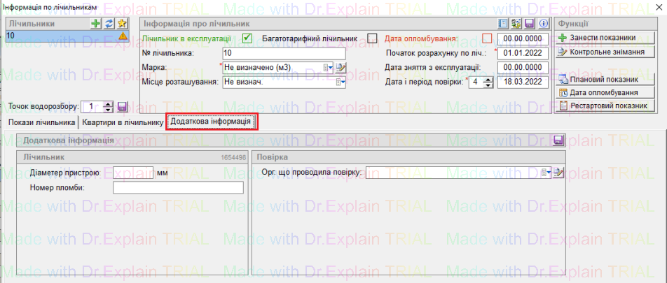 Вкладка "Додаткова інформація" по лічильнику