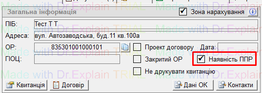 Після збереження, автоматично до такого запису додається інформація про користувача, який додав запис та дата створення запису; в "Особові рахунки" в "Картка абонента" в "Загальна інформація" буде відмітка про наявність ППР