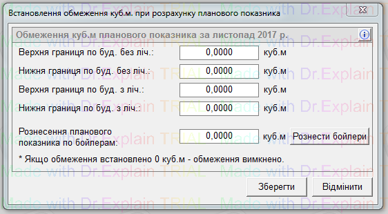 відкриється вікно "Встановлення обмеження куб.м при розрахунку планового показника":