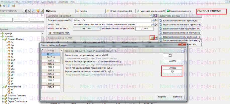 Далі вказати верхні та нижні границі по будинкам з буд. лічильником та по будинкам без буд. лічильників та нажати кнопку “Зберегти”