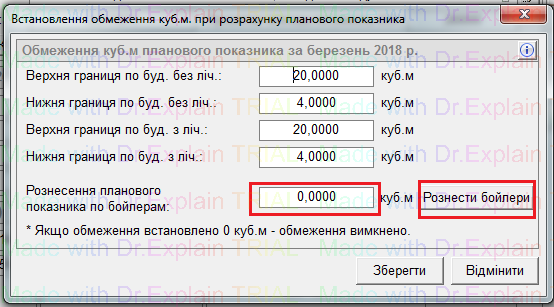 Кнопка "Зберегти" - зберігає тільки перші чотири значення (верхня та нижня границя по буд без ліч., верхня та нижня границя ао буд з ліч.), а для того, щоб зберегти куби по бойлеру, потрібно нажимати на кнопку "Рознести бойлери".
