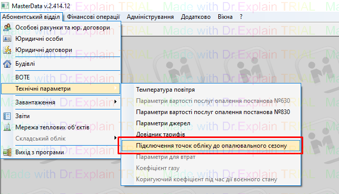 Абонентський відділ – Технічні параметри – Підключення точок обліку до опалювального сезону: