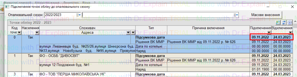 Але правильніше вносити в показник «Дату кінця» ідентичну даті кінця опалювального сезону, на нашому прикладі - 24.03.2023.
