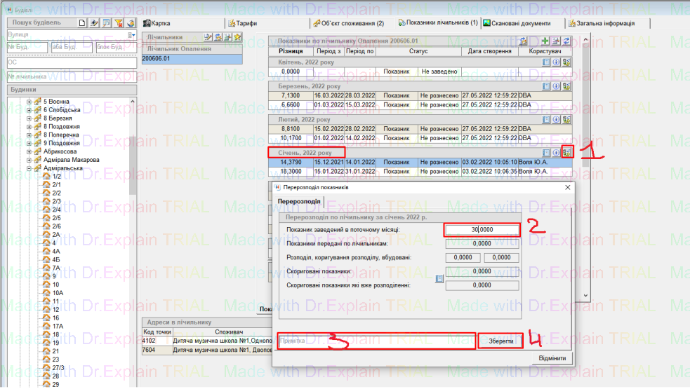 - також у полі Причина можна вказати причину виникнення перерахунку (поле з номером 3);