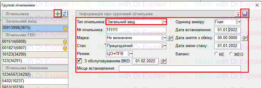 Процес створення лічильника Загальний ввід аналогічний, як лічильника ГВП або ЦО (Див. ЦО)