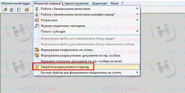 Фінансові операції - Закриття розрахункового періоду: