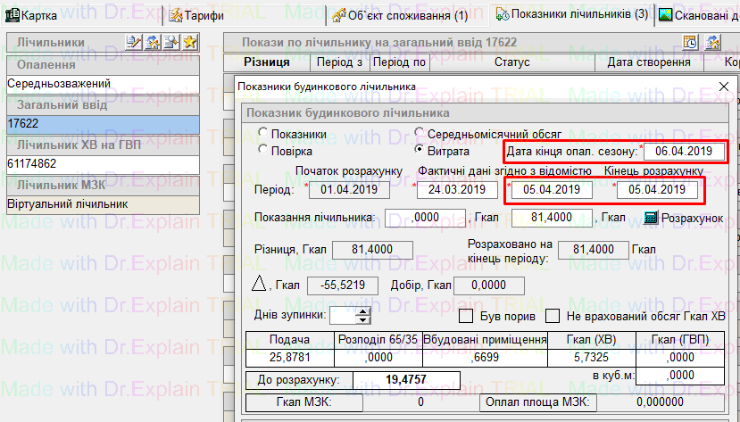 заносимо показники по 05.04.2019 (кінець опал. сезону 06.04.2019 — в цей день послуга вже відсутня)