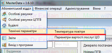 Занесення параметрів для нарахування, по постанові 630 "Про запровадження перерахунку вартості послуги з централізованого опалення залежно від температури зовнішнього повітря"