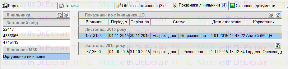 Після збереження коефіцієнтів відбудеться підрахунок віртуальних показників лічильників МЗК: