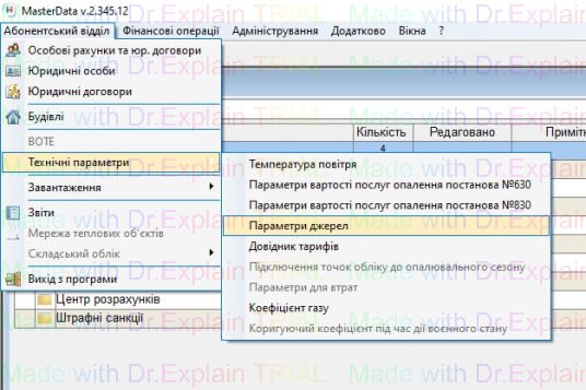 2. Відкриється вікно “Технічні параметри теплових джерел”: