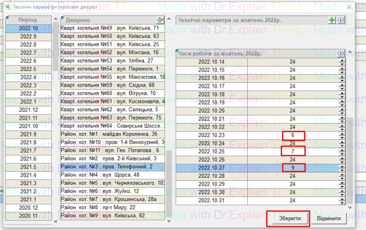 - у полі “часи роботи” натиснути “плюс”, автоматично заповниться весь місяць з 24 годинами за кожен день: