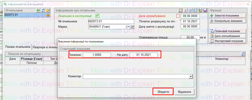 - система запропонує внести стартовий показник, вказати стартовий показник і натиснути “Зберегти”: