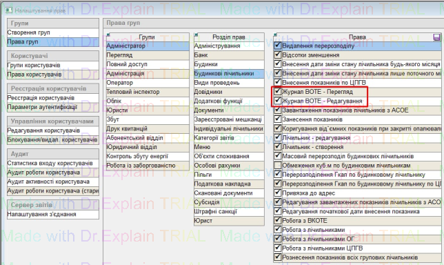 Для роботи з журналом ВОТЕ, користувачу потрібно надати права: