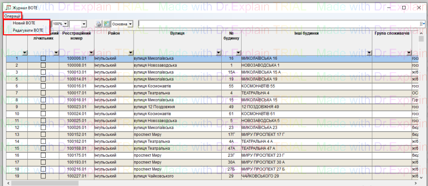 Для заведення нового ВОТЕ або редагування, натиснути “Операції”, і вибрати Новий/ або Редагування: