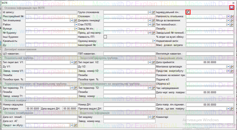 Якщо у журнал ВОТЕ заводите дані про індивідуальний лічильник, тоді при заведенні потрібно поставити галочку біля поля “Індивідуальний ліч.”(показано вище на зображенні).