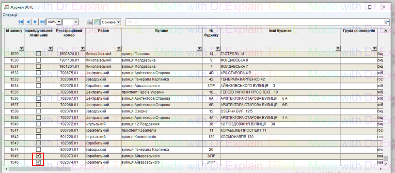 - відкриється Журнал ВОТЕ з списком заведених індивідуальних лічильників у журналі, щоб прив’язати індивідуальний лічильник із списку Журналу до особового рахунку, потрібно двічі клацнути по потрібному лічильнику: