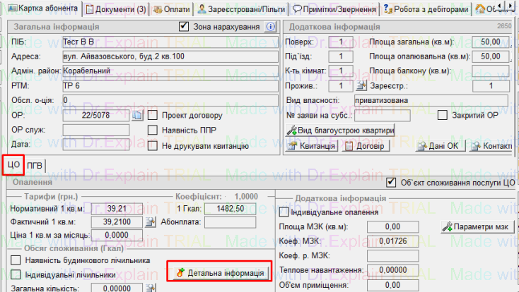 - на вкладці з послугою ЦО натиснути “Детальна інформація”: