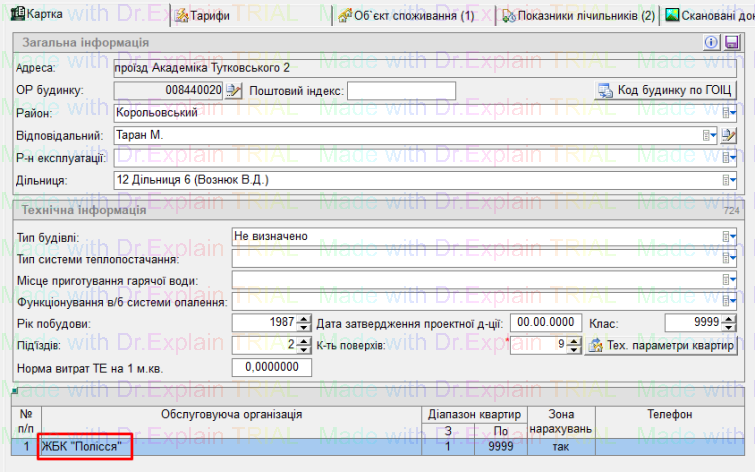 в картці будинку Академіка Тутковського 2 тепер відображена обстуговуюча організація "ЖБК Полісся"