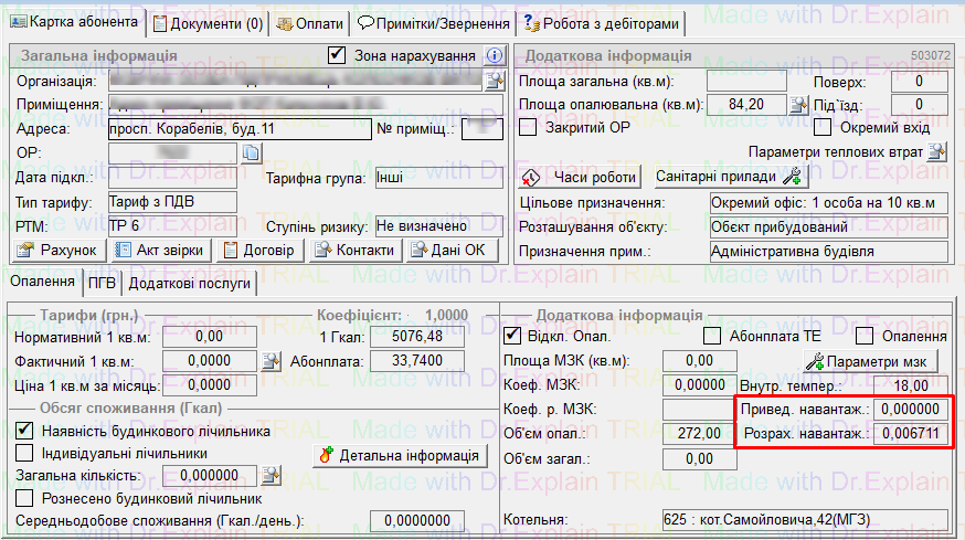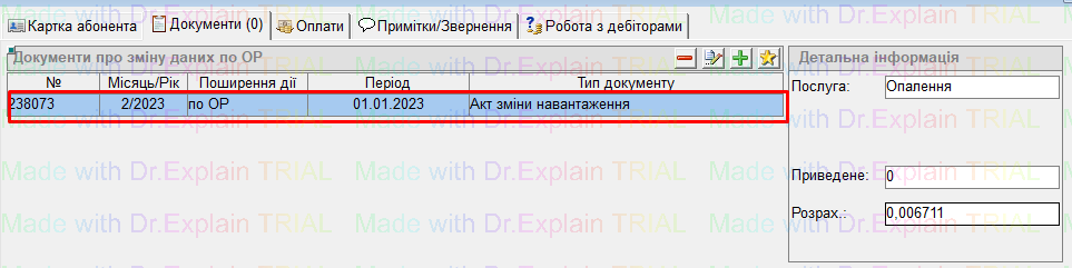 3. Також змінене навантаження буде відображене по відповідній послузі, у картці особового рахунку: