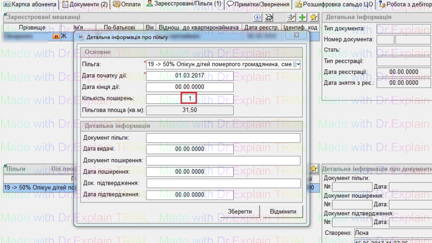 - клацнути на потрібного пільговика, і потім двічі клацнути мишкою по пільзі, в якій потрібно зробити зміни, відкриється вікно: