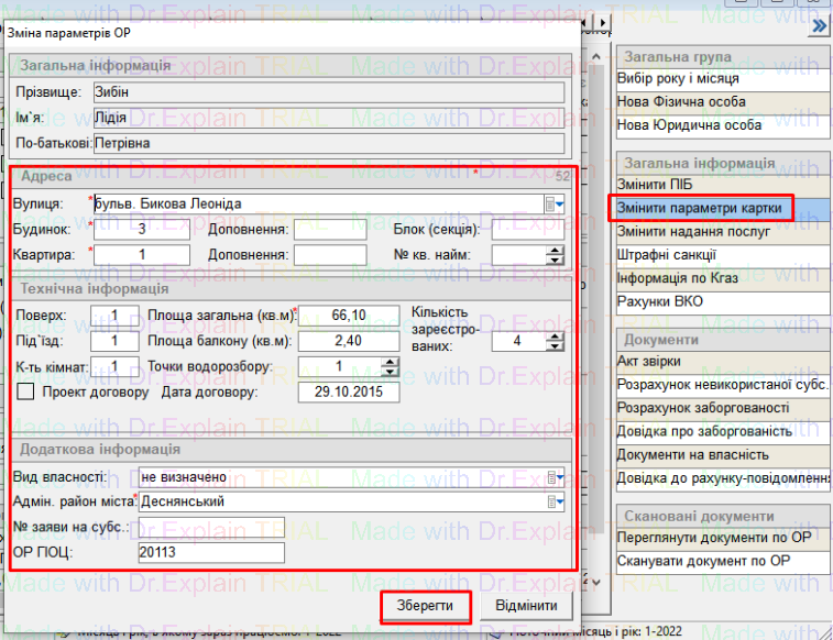 - додаткову інформацію (вид власності, район міста, якщо є то № заяви на субсидію та ОР ПОЦ);