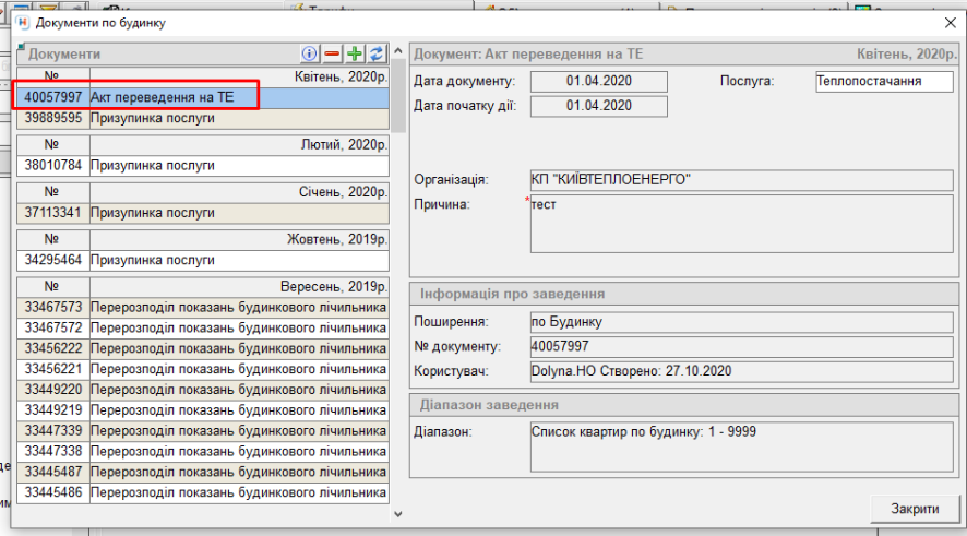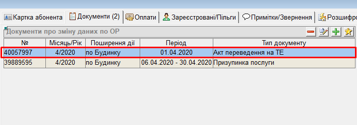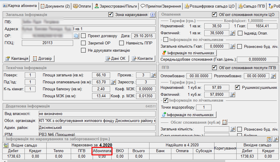 - В сальдо по послугах по ОР з’явиться інформація по послугах: ГВ, ТЕ, Абонплата: