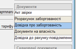 Довідка про заборговність — при виборі цього пункту відкриється вікно: