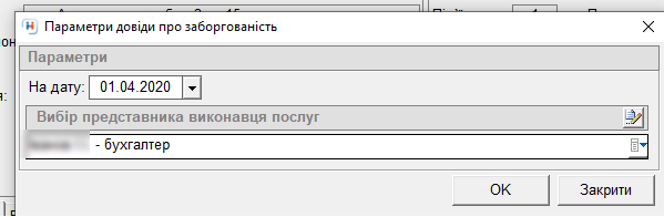 обрати потрібні параметри, нажати "ОК" і отримаємо "Довідку про заборгованість"
