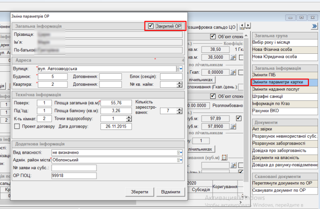 Раніше особові рахунки закривались таким способом: через “Змінити параметри картки” - галочка “Закритий ОР”: