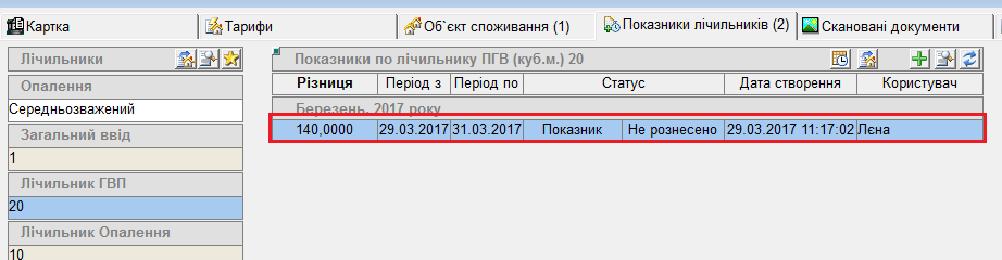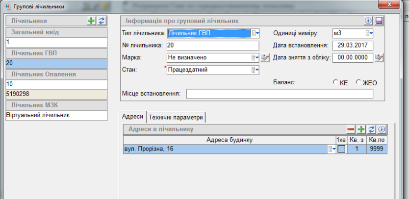 Створення будинкового лічильника ГВП та внесення по ньому показників
