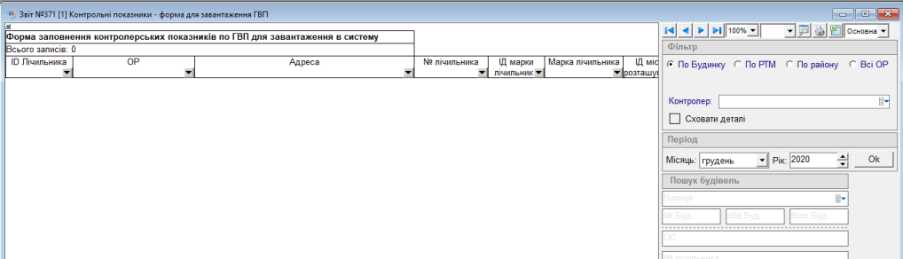Цей звіт буде заповнений наявною інформацією, залишиться тільки ввести дату зняття показника, і сам показник, та інформацію яка відсутня в системі.