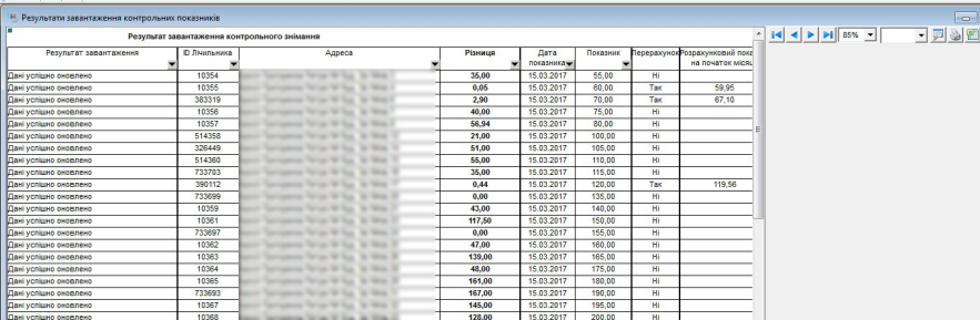 Після проведення роботи зі зняття контрольних показників лічильника та для автоматичного завантаження даних контролер переносить дані з відомості до звіту: