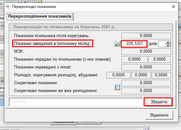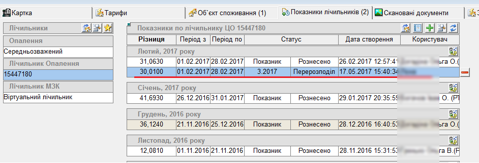 і у "Показниках по лічильнику" буде відображена нова строчка "Редагування-Перерозподіл"